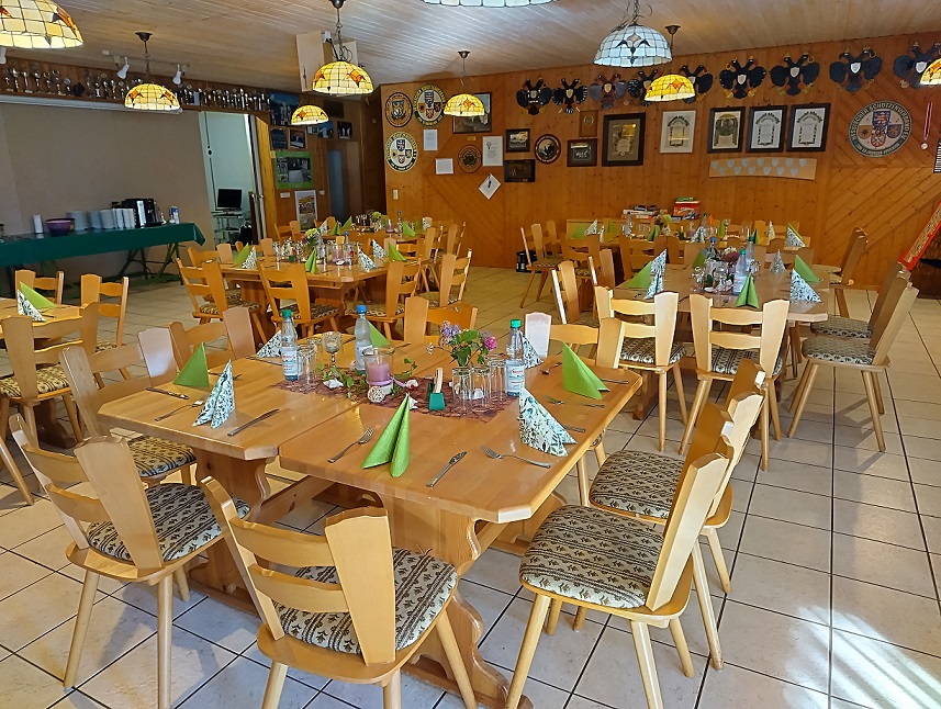 Das Schützenhaus wurde im Jahr 1993 eröffnet und bietet im Innenraum Platz für Veranstaltungen bis zu 100 Personen. Es ist jeden Mittwoch und Freitag ab 19h für Jedermann geöffnet. Der Thekendienst bietet neben Getränken auch Kleinigkeiten zum Speisen an.